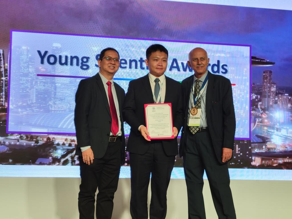 IUFoST主席V. Prakash和新加坡食品学会(SIFST)主席Richard Khaw为隋晓楠教授颁奖