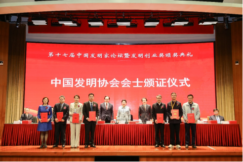 4月25日,第十七届中国发明家论坛暨发明创业奖颁奖典礼在北京中国科技会堂隆重举行,会议由中国发明协会、科技日报社、国家科学技术奖励工作办公室、中国知识产权报社主办,主题为“科技创新引领高质量发展”。大会由中国发明协会党委书记、常务副理事长兼秘书长余华荣主持,第十届全国人大常委会副委员长、中国关心下一代工作委员会主任顾秀莲,中国发明协会理事长、科技部党组成员、副部长吴朝晖,国家知识产权局专利局副局长王岚涛,全国总工会副主席、中国发明协会副理事长高凤林,国家科学技术奖励工作办公室副主任汪航等领导莅临会议,来自全国科技界、发明创新领域、企业家代表500余人线下线上参加盛会。
