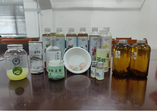 学生们的作品天“颜”茶——时令入茶、“椰肽豆楽”双植物基胶原茶冻酸奶、植言茶绘营养茶饮料、“藜”想“碳”中和--谷物发酵碳酸茶饮料、“桃之夭夭”—蜜桃味汽酒型茶酒、花“芯”麻薯、“果·禅”功能性改良唐果子、活性肽乳酸发酵白茶饮料、乌龙糯米酒无不体现了“茶食共融”的创新理念,也体现了食品学子为科学研究积极探索与时俱进的创新精神。